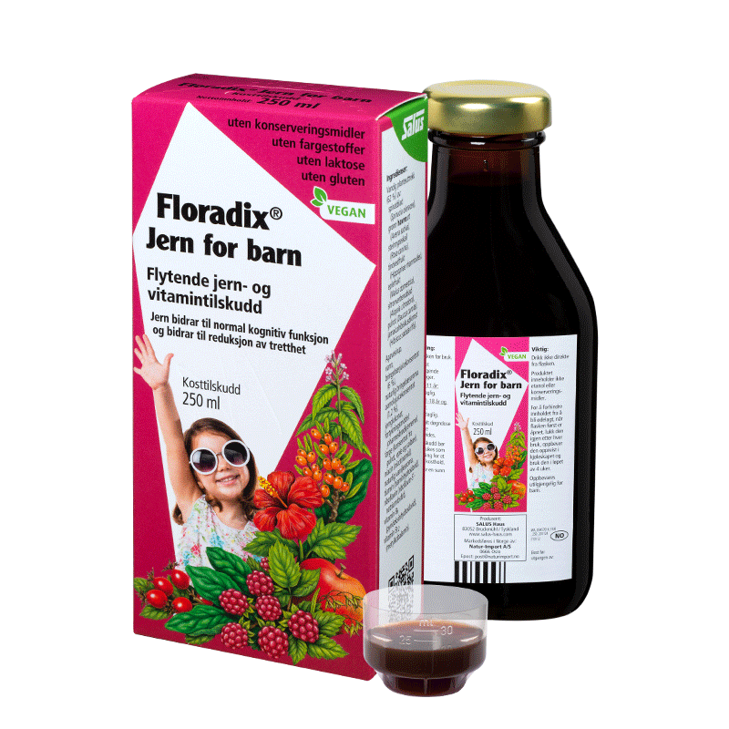 Det flytende jerntilskuddet Floradix Formula fra kvalitetsprodusenten Salus har gjennom årene hjulpet titusener av nordmenn å dekke sin jernmangel. Nå lanserer vi jern- og vitamintilskuddet, Floradix Jern for barn, i Norge.