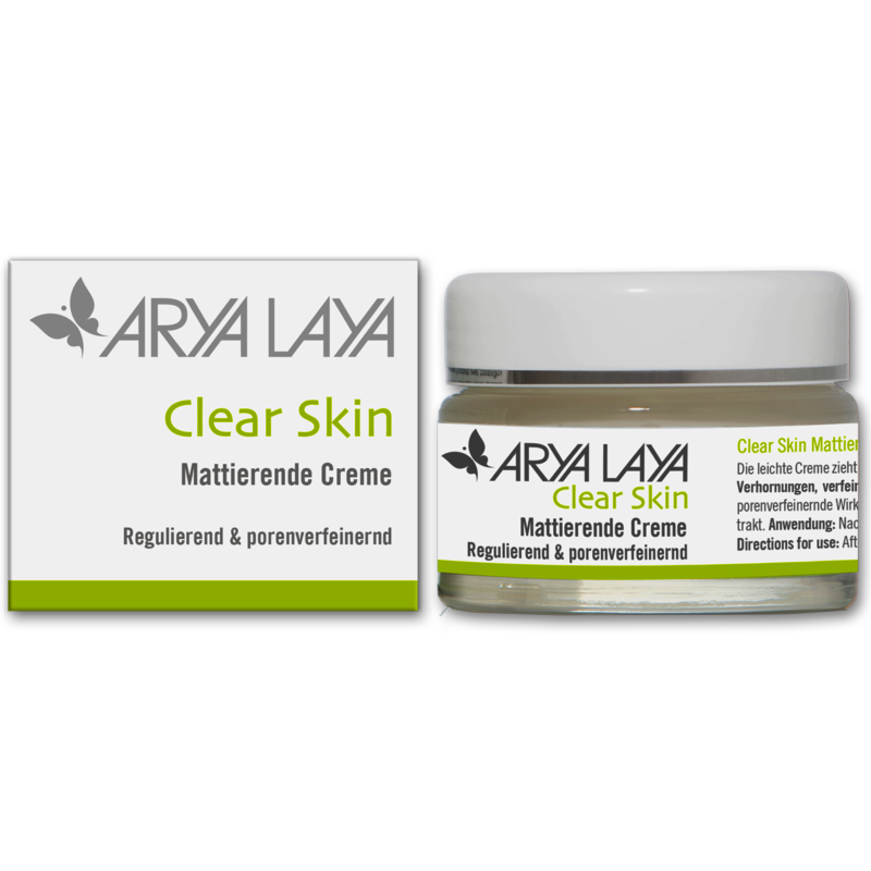 Clear Skin dag og nattkrem beskytter og nærer huden både dag og natt. Hudens funksjon normaliseres og store porer blir redusert. Fete områder får en matt overflate, takket være kombinasjonen av utvalgte urteekstrakter. Basen bestående av ikke-fettende oljer som gir typiske tørre områder av ansiktet viktige og essensielle fettsyrer. Fuktighetsgivende ingredienser hindrer huden fra å tørke ut.
