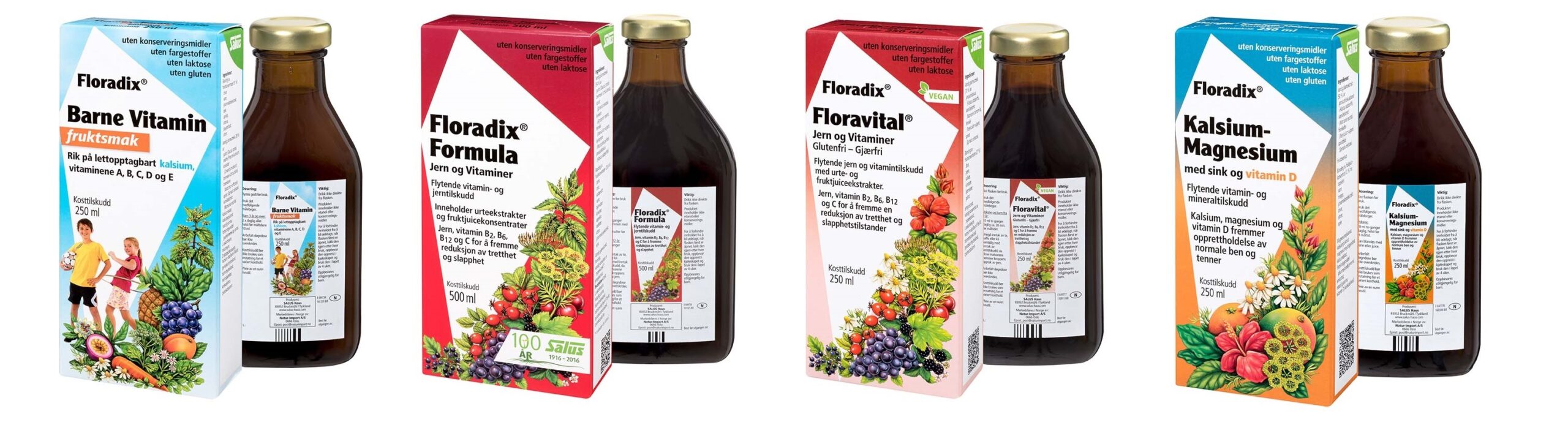 Floradix Barnevitamin Vitamin A, D, E, C, B1, B2, Niacin, B6, B12, Kalsium